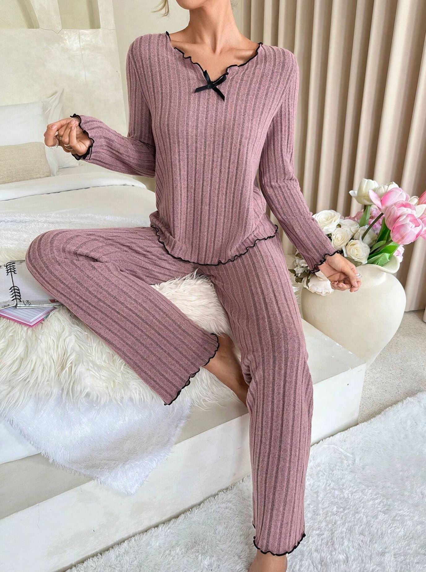Elevate your loungewear with the Rosy Comfort Lettuce Trim Lounge Set, where comfort meets feminine sophistication. Whether you're unwinding after a busy day or starting your morning routine, this set promises a cozy and stylish experience.